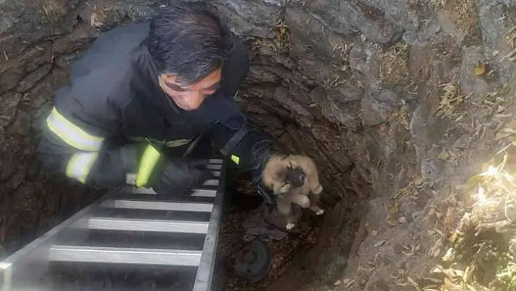 Bingöl'ün Genç ilçesinde su kuyusuna düşüp mahsur kalan yavru köpeği, itfaiye ekipleri kurtardı.