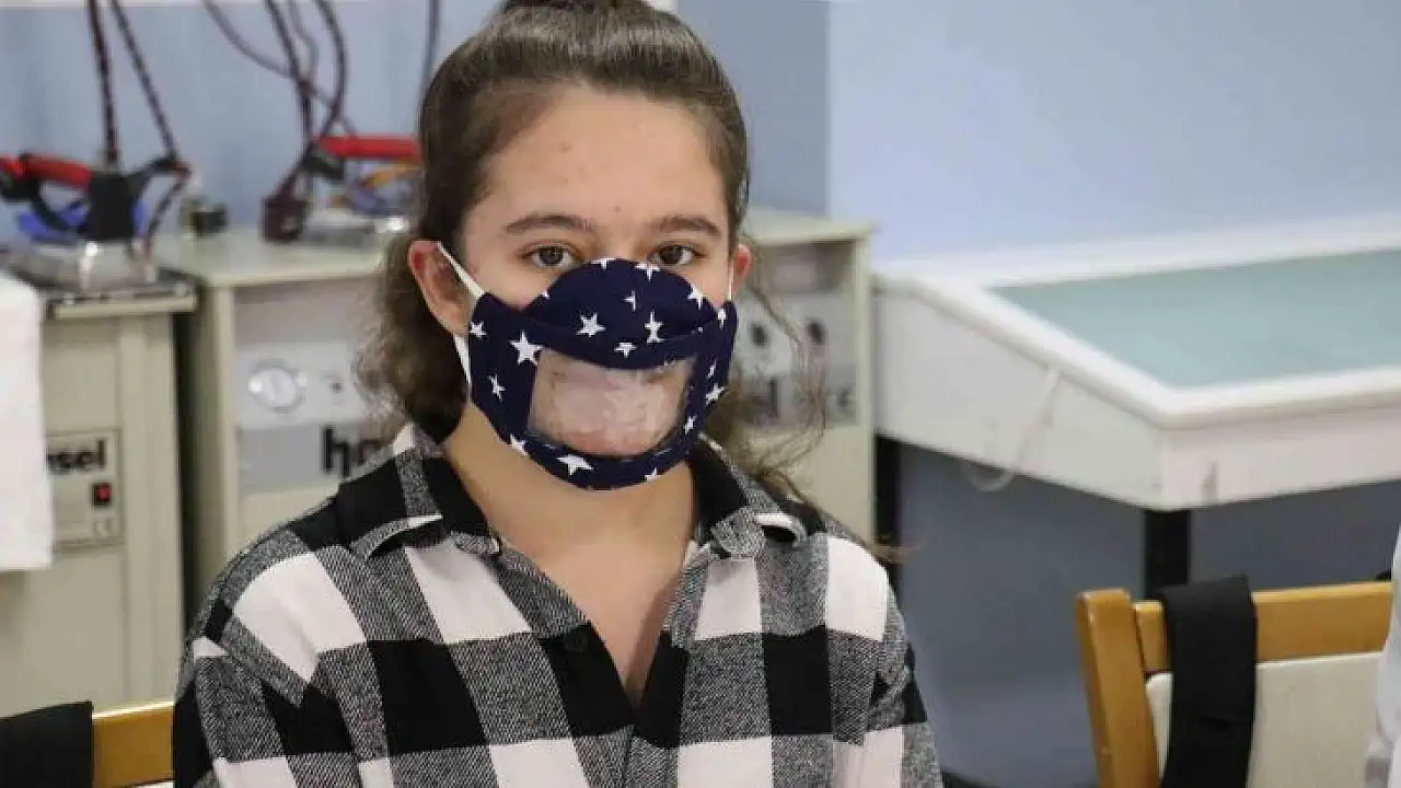 Lise öğrencileri işitme engeliler için şeffaf maske üretti