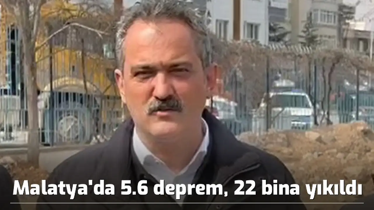 Malatya’da 12.04’te meydana gelen 5.6 büyüklüğündeki depremle ilgili açıklamalarda bulunan Milli Eğitim Bakanı Mahmut Özer, 22 binanın yıkıldığını, yaralıların olduğunu ifade etti.