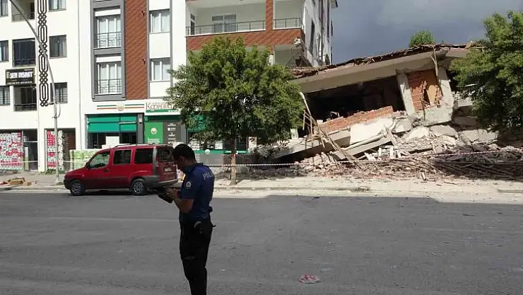 Malatya'da ağır hasarlı bina yıkım sırasında sağlam binanın üzerine çöktü