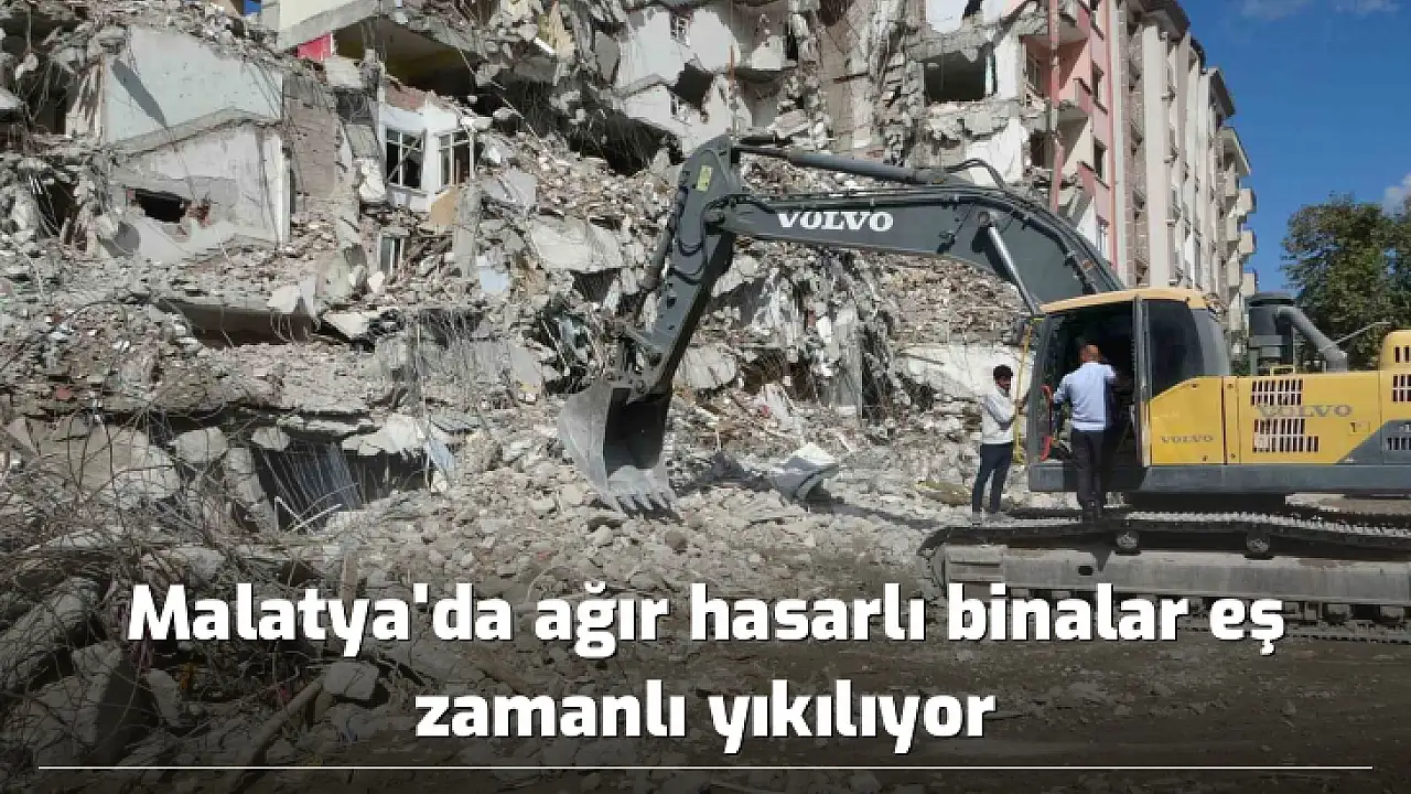Malatya'da ağır hasarlı binalar eş zamanlı yıkılıyor
