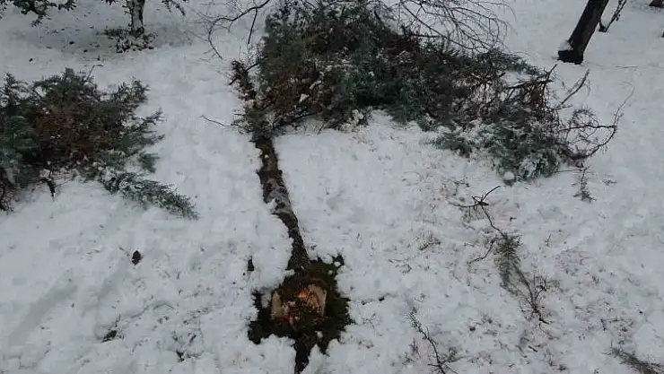 Malatya'da dün akşam saatlerinde başlayarak kent genelinde etkili olan yoğun kar yağışına dayanamayan çok sayıda ağaç devrilirken, birçok ağacın da dalları kırıldı.
