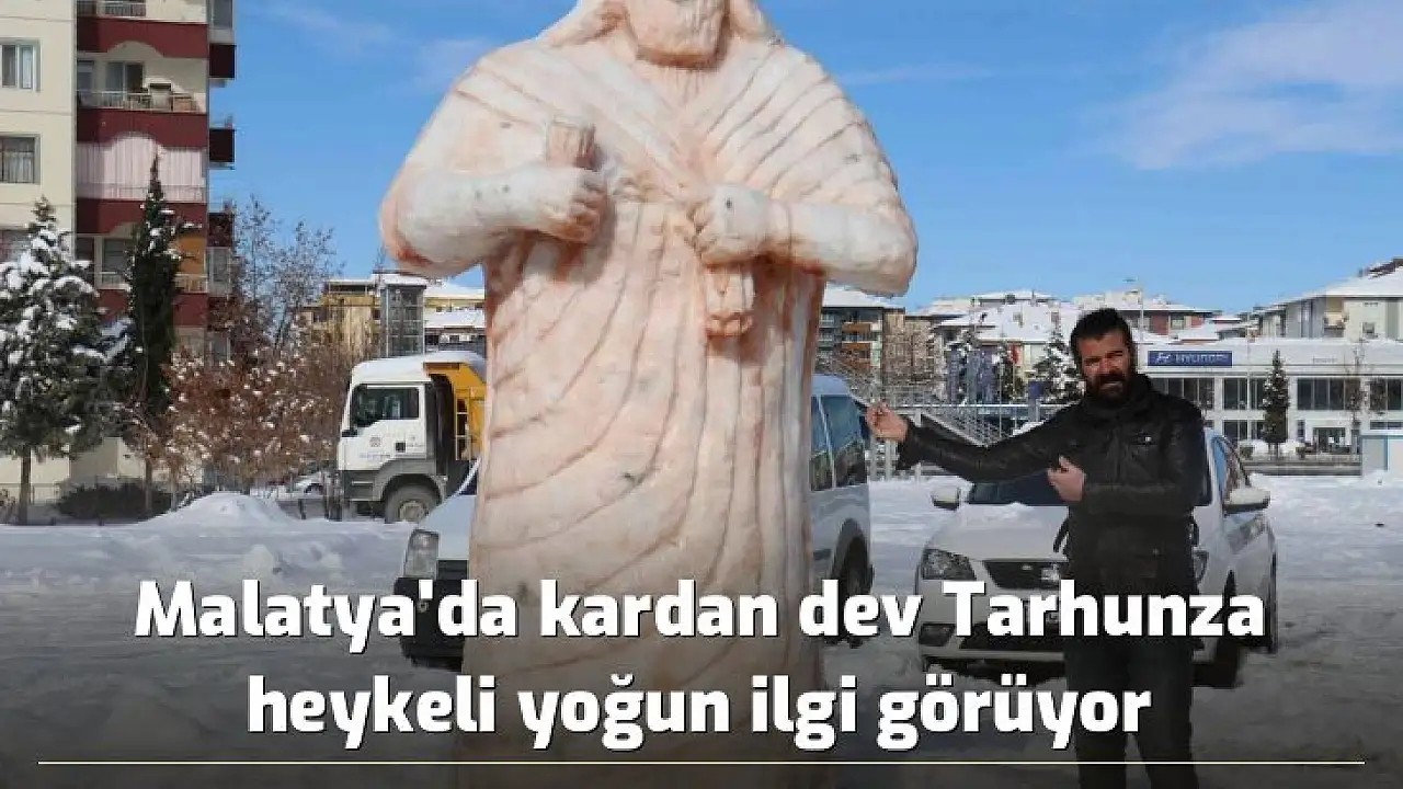 Malatya'da etkili olan kar yağışı hayatı olumsuz etkilerken, Malatyalı Heykeltıraş ve arkadaşları kardan dev Tarhunza heykeli yaptılar. Yaklaşık 4 metre yüksekliğindeki kardan heykel görenleri şaşkına çevirdi.