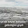Malatya'da etkili olan kar yağışı sonrası kent beyaza bürünürken, kayısı bahçeleri de beyaz gelinliğini giydi, ortaya kartpostallık görüntüler çıktı.