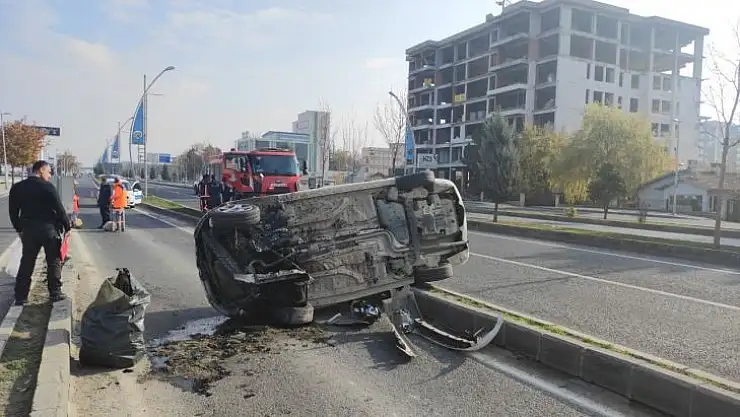 Malatya'da sürücünün kontrolünden çıkan otomobil refüje çarptıktan sonra yan yattı. Kameralara saniye saniye yansıyan kazada 2 kişi yaralandı.