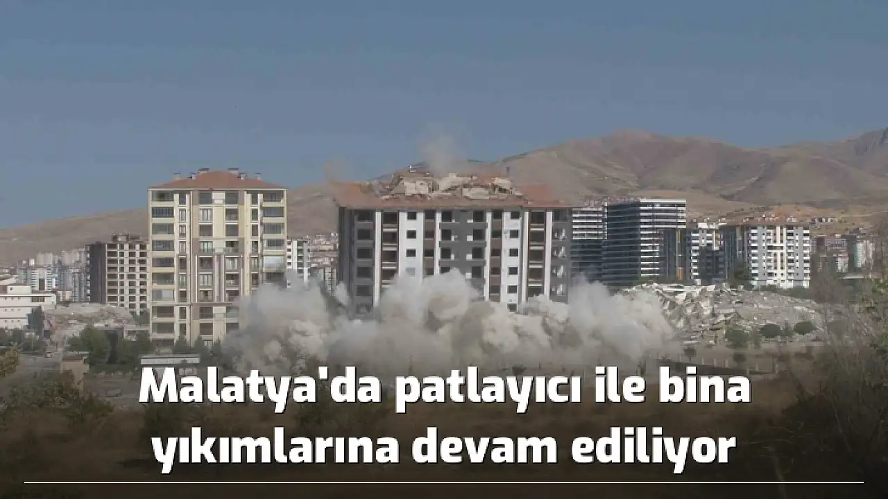 Malatya'da ağır hasarlı yüksek katlı binaların patlayıcı madde kullanılarak yıkımlarına devam ediliyor.