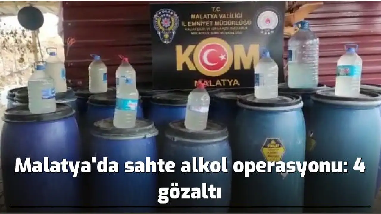 Malatya'da polis tarafından 4 ayrı adrese düzenlenen operasyonda 4 bin 173 litre sahte alkol ele geçirilirken, olayla ilgili 4 kişi gözaltına alındı.