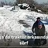 Malatyalı 4 genç traktörün arkasına bağladıkları iple karda sörf yaptı
