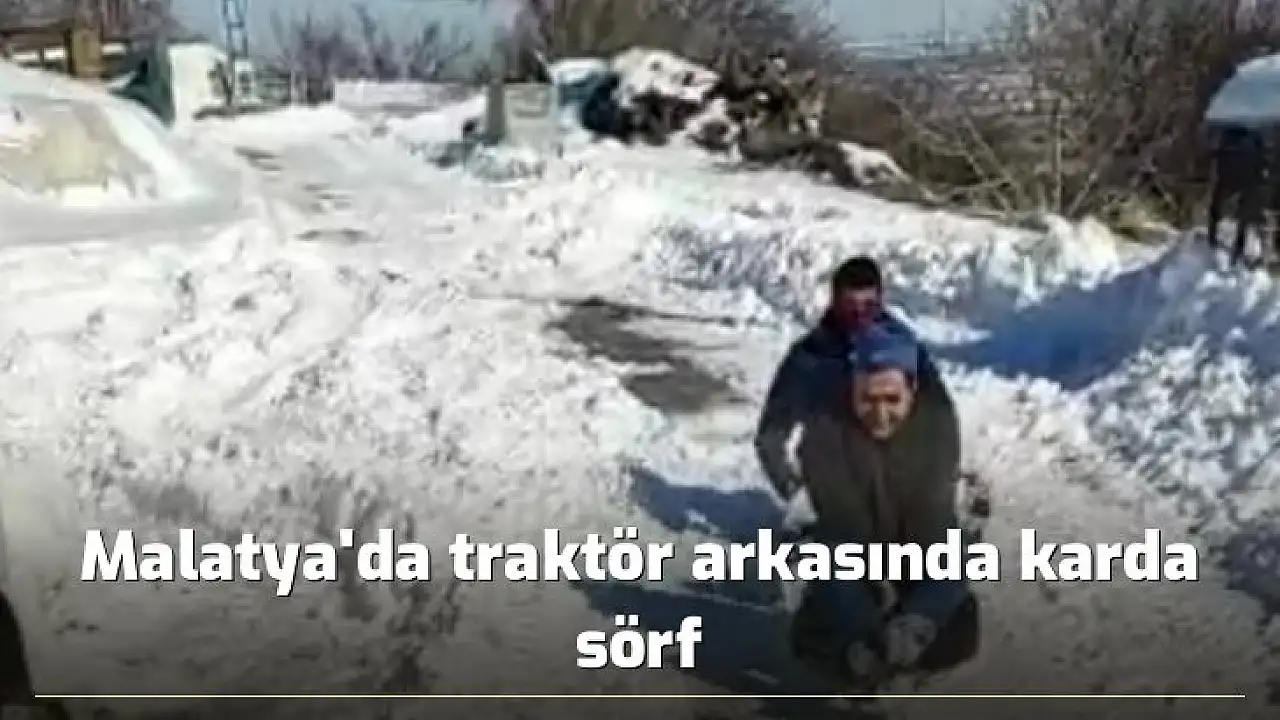Malatya'da 4 kafadar traktörün arkasına bağladıkları iple karda sörf yaptı, o anları ise cep telefonlarıyla görüntüledi.