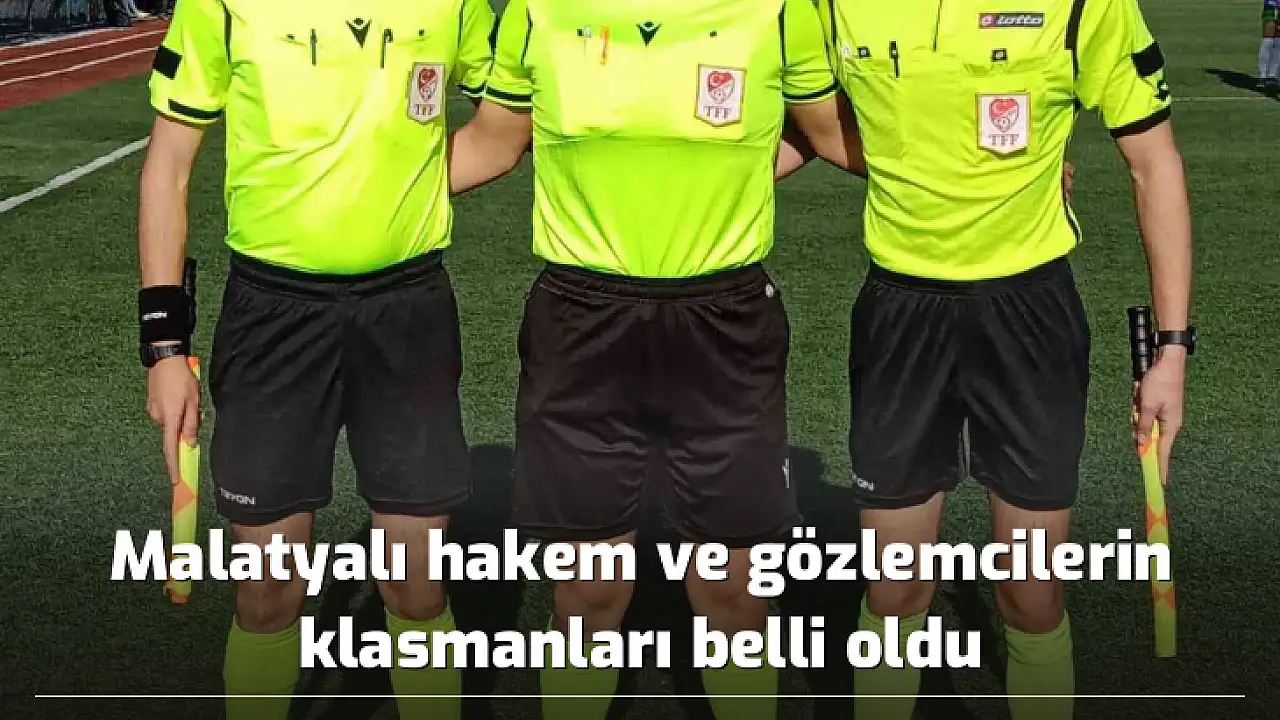 Bir üst klasmana çıkma başarısı gösteren ve 2023-2024 futbol sezonunda Malatya’dan listeye giren hakem ve gözlemciler belli oldu. Türkiye Futbol Federasyonu resmi internet sitesinden yapılan açıklamada Malatya’dan listeye dahil olan hakem ve gözlemciler şu şekilde: