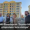 Depremzede vatandaşların kalıcı konutlarına biran önce kavuşması için çalıştıklarını kaydeden Ölmeztoprak,” Cumhurbaşkanımız Recep Tayyip Erdoğan’ın katılımları ile temeli atılan Gelinciktepe bölgemizdeki TOKİ tarafından inşa edilen 599 deprem konutlarını ve Şehit Fevzi mahallemizde yapımı süren 679 adet konut ve 18 adet dükkanın yapım sürecini şantiye alanına giderek ve örnek dairemizi de ziyaret ederek, yerinde inceledik. Vatandaşlarımızın kalıcı konutlara bir an önce kavuşması bizler için en önemli konulardan birisi” İfadelerini kullandı.