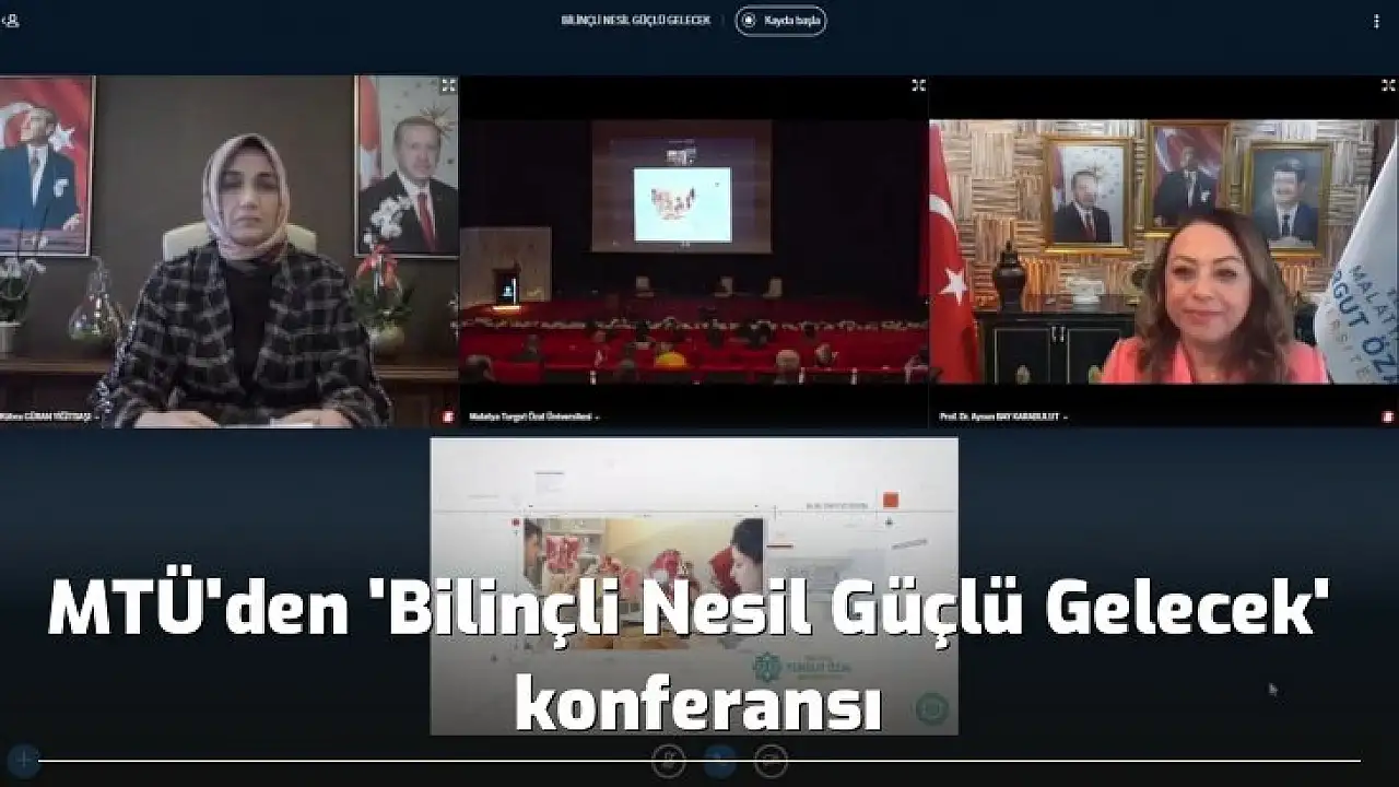 Malatya Turgut Özal Üniversitesi (MTÜ) tarafından 24 Kasım Öğretmenler Günü ve 25 Kasım Kadına Şiddetle Mücadele Günü kapsamında 'Bilinçli Nesil Güçlü Gelecek' konulu konferans düzenlendi. Online düzenlenen programa, Aile ve Sosyal Hizmetler Bakan Yardımcısı Kübra Güran Yiğitbaşı, MTÜ Rektörü Prof. Dr. Aysun Bay Karabulut, rektör yardımcıları, genel sekreter, öğretim üyeleri ve öğrenciler katıldı.
