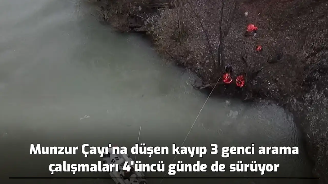 Tunceli'de otomobilin Munzur Çayı'na düşmesi sonucu kaybolan 3 genci arama çalışmaları, 4'üncü günde de devam ediyor.