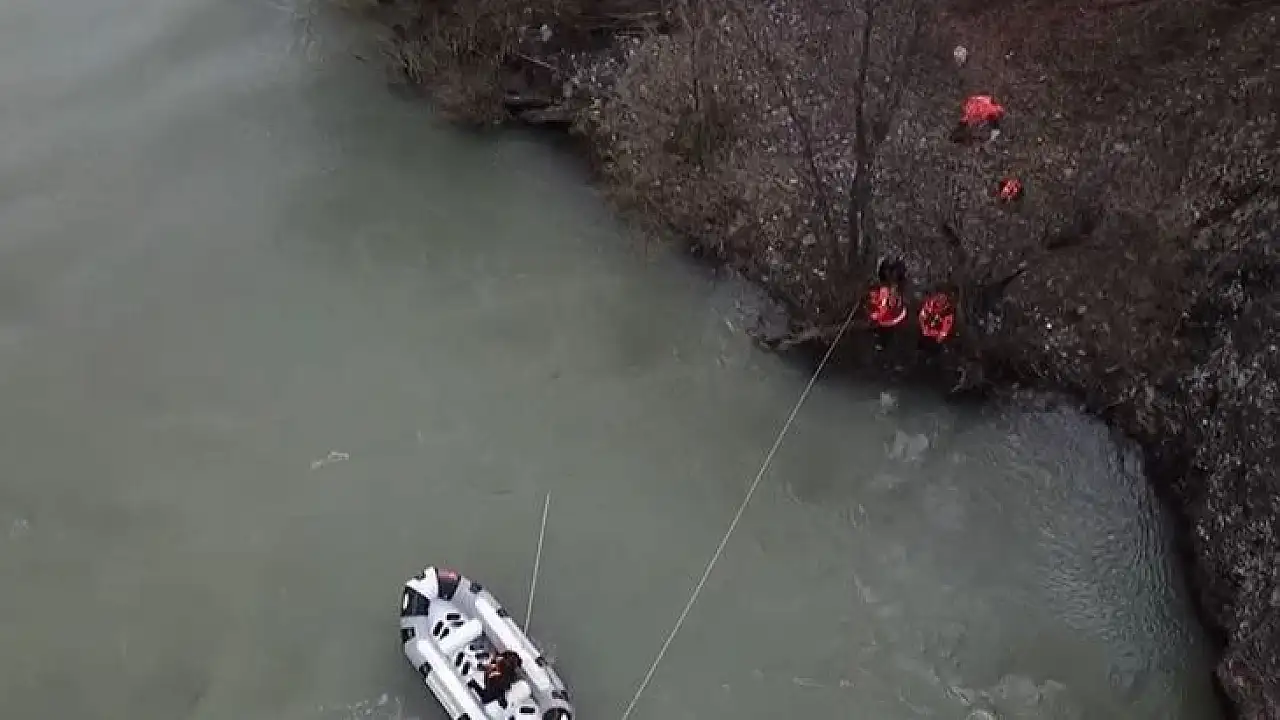 Munzur Çayı’nın kıyısında helikopter ve drone ile çalışmalar sürerken, baraj gölünde de botlarla arama çalışmaları aralıksız devam ediyor.