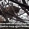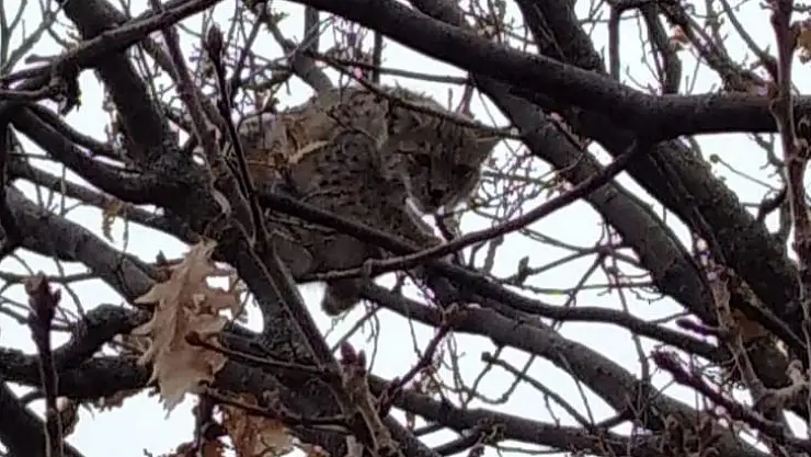 Tunceli'de nesli tükenme tehlikesi altında olduğu için dünyada birinci derece koruma altında bulunan vaşak, köpekten kaçıp bir ağaca tırmandı. Vaşağın ağaçtaki görüntüsü, cep telefonu kamerasına yansıdı.