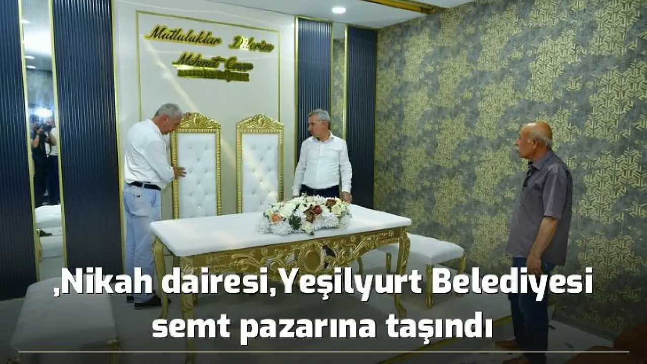 Yeşilyurt Belediye Başkanı Mehmet Çınar, yeni nikah dairesi hakkında bilgi vererek, 'Kadın ve Aile Hizmetleri Müdürlüğümüz ile Nikh Dairemizi, Çilesiz ve Tecde Mahallelerimizin birleşme noktasında hizmete sunduğumuz Yeşilyurt Belediye Semt Pazarı-1'e taşıdık' dedi.