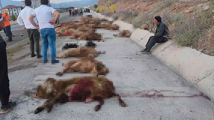 Malatya’da bir otobüsün çevreyolunda küçükbaş hayvan sürüsüne dalması sonucu 70 hayvan telef oldu.