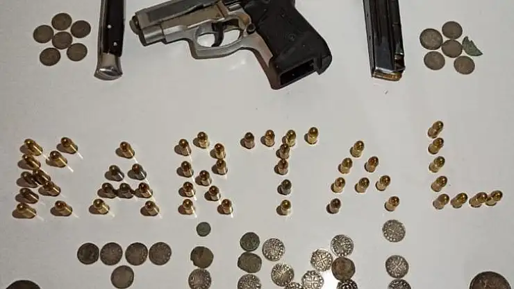 Diyarbakır'da bir otomobilde Bizans dönemine ait 46 adet sikke, tabanca, fişek ve bıçak ele geçirildi, sürücü gözaltına alındı.