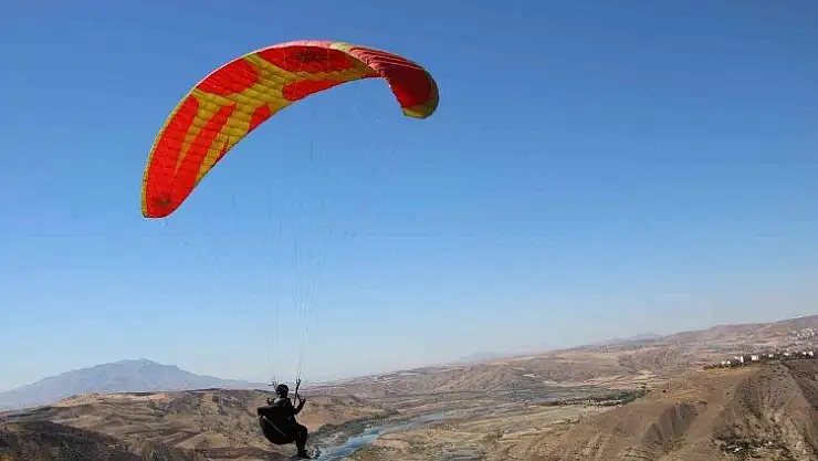 Elazığ'ın tarihi Palu ilçesi bin 100 rakımlı dağda farklı illerden gelen 14 pilot, paraşütle yamaç uçuşu yaparak heyecanlı ve renkli görüntüler oluşturdu.