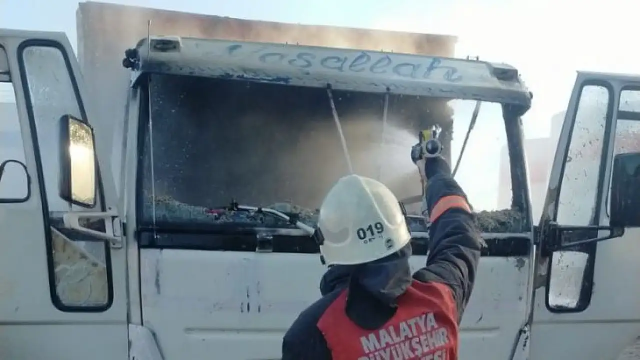 Malatya’da park halindeki kamyon alev alev yandı. Olay anı cep telefonu ile görüntülendi.