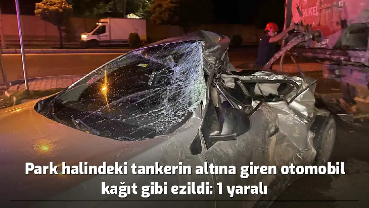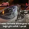 Park halindeki tankerin altına giren otomobil kağıt gibi ezildi: 1 yaralı