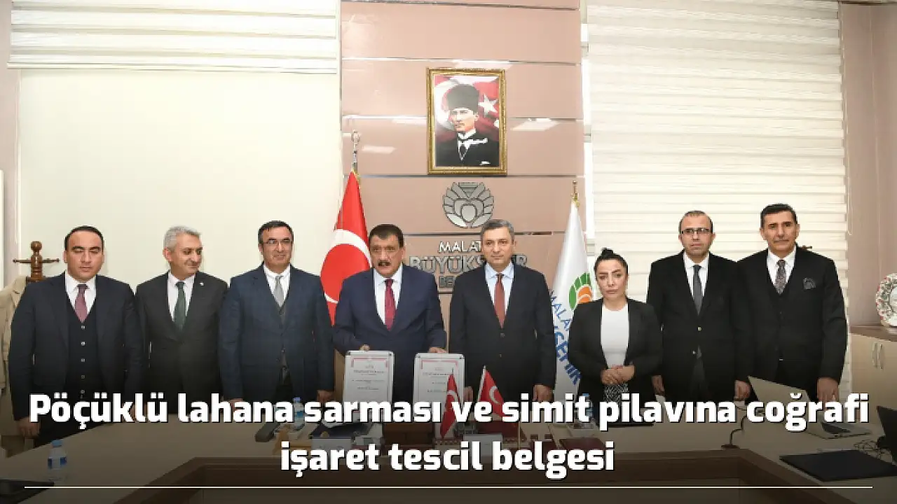 Malatya Büyükşehir Belediyesi Sosyal Tesisleri (BELSOS) tarafından sürdürülen çalışmalar neticesinde Malatya’nın zengin mutfağında yer alan Pöçüklü Lahana Sarması (Nahna Köftesi) ve Simit Pilavı Türk Patent ve Marka Kurumunca tescillenerek Coğrafi İşaret Tescil Belgesi aldı. Tescil belgelerini Malatya Valisi Hulusi Şahin, Malatya Büyükşehir Belediye Başkanı Selahattin Gürkan’a teslim etti.