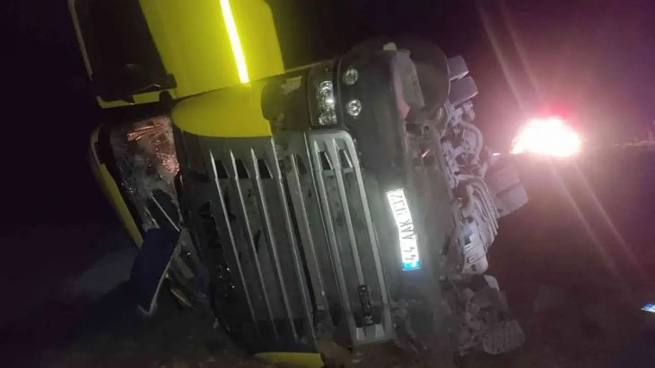 Edinilen bilgiye göre, Malatya istikametinden Adıyaman istikametine gitmekte olan Cuma Durmaz idaresindeki 44 AAK 932 plakalı Scania marka tır Erkenek Mahallesi girişinde sürücünün direksiyon hakimiyetini kaybetmesi sonucu kontrolden çıkarak şarampole devrildi.