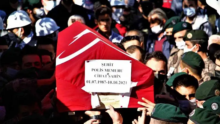 Fırat Kalkanı Harekatı Bölgesinde zırhlı araca terör örgütü mensupları tarafından düzenlenen füzeli saldırı sonucunda Özel Harekat Polisi Cihat Şahin ve Fatih Doğan şehit düşmüş, 2 poliste yaralanmıştı. Bugün memleketi Elazığ’a getirilen şehit 2 çocuk babası 34 yaşındaki Cihat Şahin için Mevlana Caminde cenaze töreni düzenlendi. Törene, İçişleri Bakanı Süleyman Soylu, Adalet Bakan Yardımcısı Yakup Moğul, Emniyet Genel Müdürü Mehmet Aktaş, Elazığ Valisi Ömer Toraman, AK Parti Elazığ Milletvekili Zülfü Demirbağ, Belediye Başkanı Şahin Şerifoğulları, FÜ Rektörü Prof. Dr. Fahrettin Göktaş, Özel Harekat Başkanı Selami Türker, İl Emniyet Müdürü Celal Sel, 8. Kolordu Komutanı Tuğgeneral Sadettin Alp Ergin, yakınları ve ailesi katıldı.