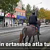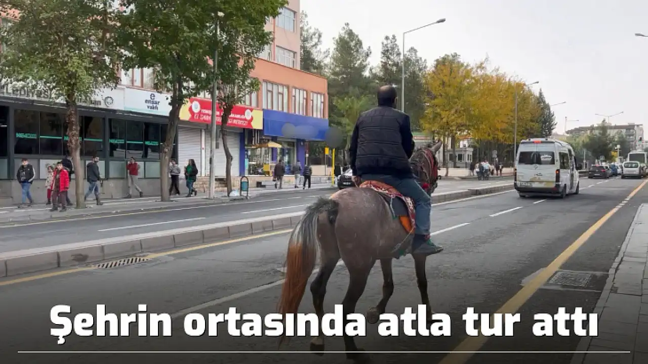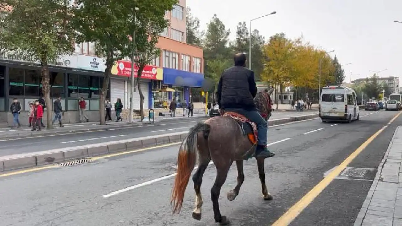 Diyarbakır'da bir kişi, at ile şehrin ortasında araç ve yayalara açık olan trafikte tur attı. O anlar bir vatandaşın telefon kamerasına yansıdı.