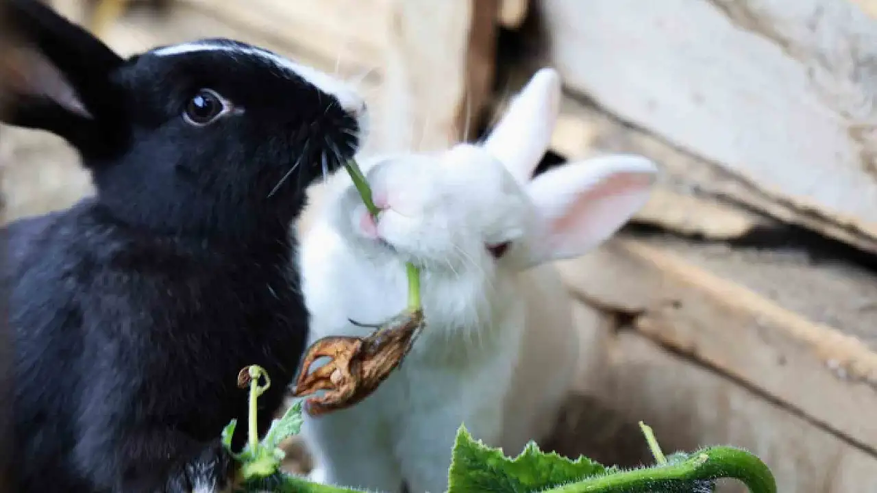 Sevimlilikleriyle göz kamaştıran tavşanların ot ziyafeti