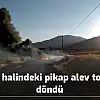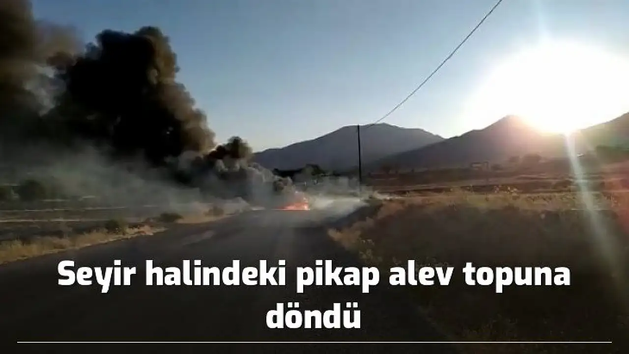 Elazığ'ın Palu ilçesinde seyir halindeki bir pikap çıkan yangında alev topuna döndü.