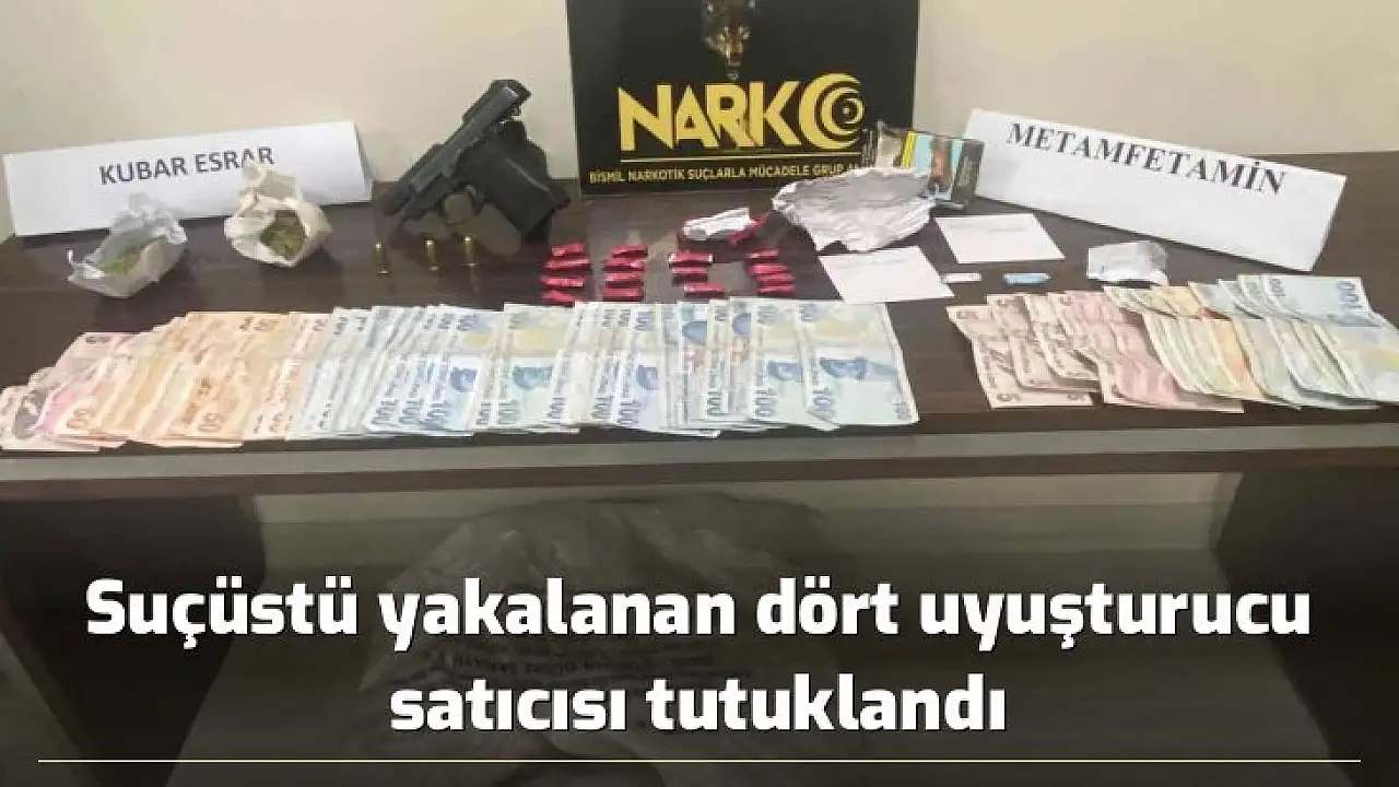 Diyarbakır'ın Bismil ilçesinde Narkotik Suçlarla Mücadele Grup Amirliği ekiplerince suçüstü yakalanan dört şüpheli, çıkarıldıkları adli makamlarca tutuklandı.
