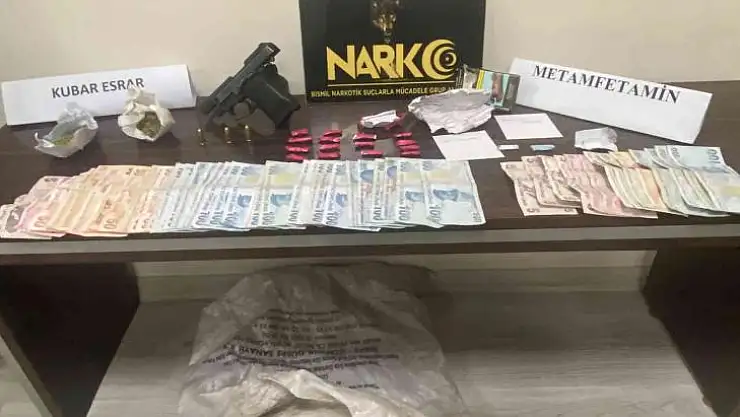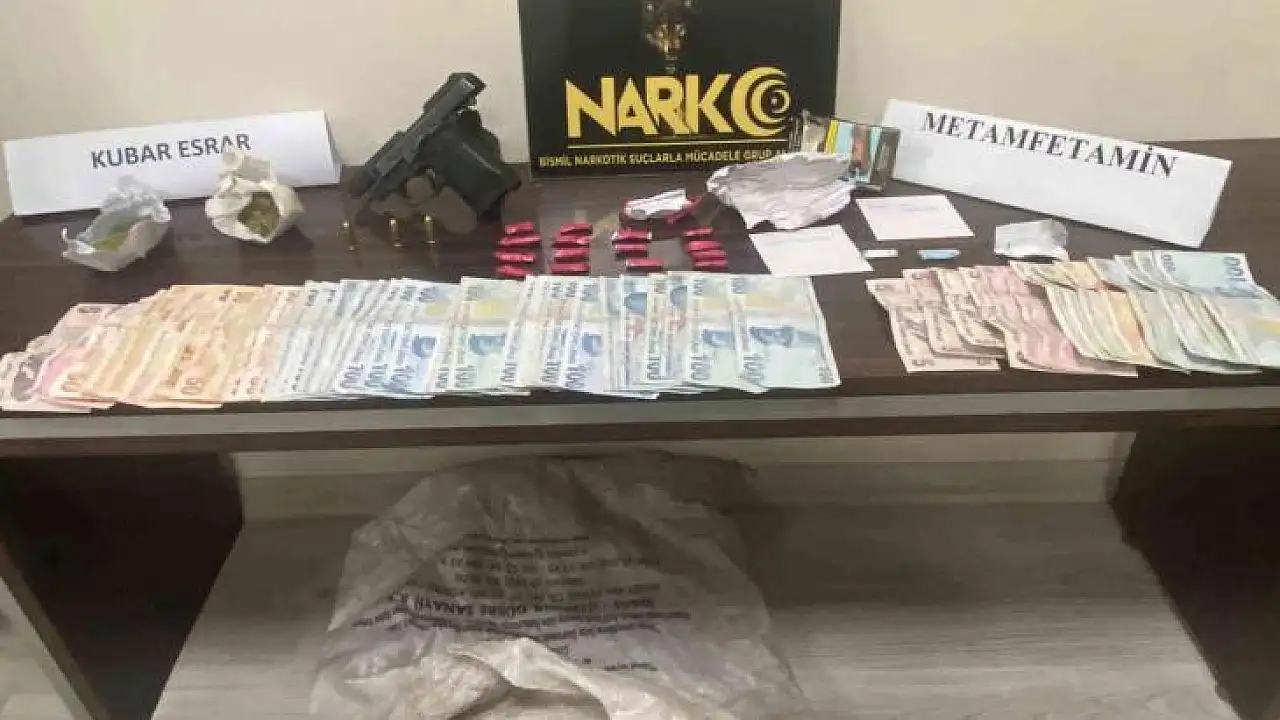 Bismil Narkotik Polisinin yaptığı çalışmalar neticesinde yaklaşık 500 gram uyuşturucu madde, 1 adet tabanca ve uyuşturucu ticaretiyle ilişkili nakit para ile yakalanan S.S. (26), N.Y. (35), İ.Y. (22), İ.A. (31) isimli şüpheliler, Bismil İlçe Emniyet Müdürlüğündeki işlemlerinin ardından Bismil Adalet Sarayına sevk edildi.