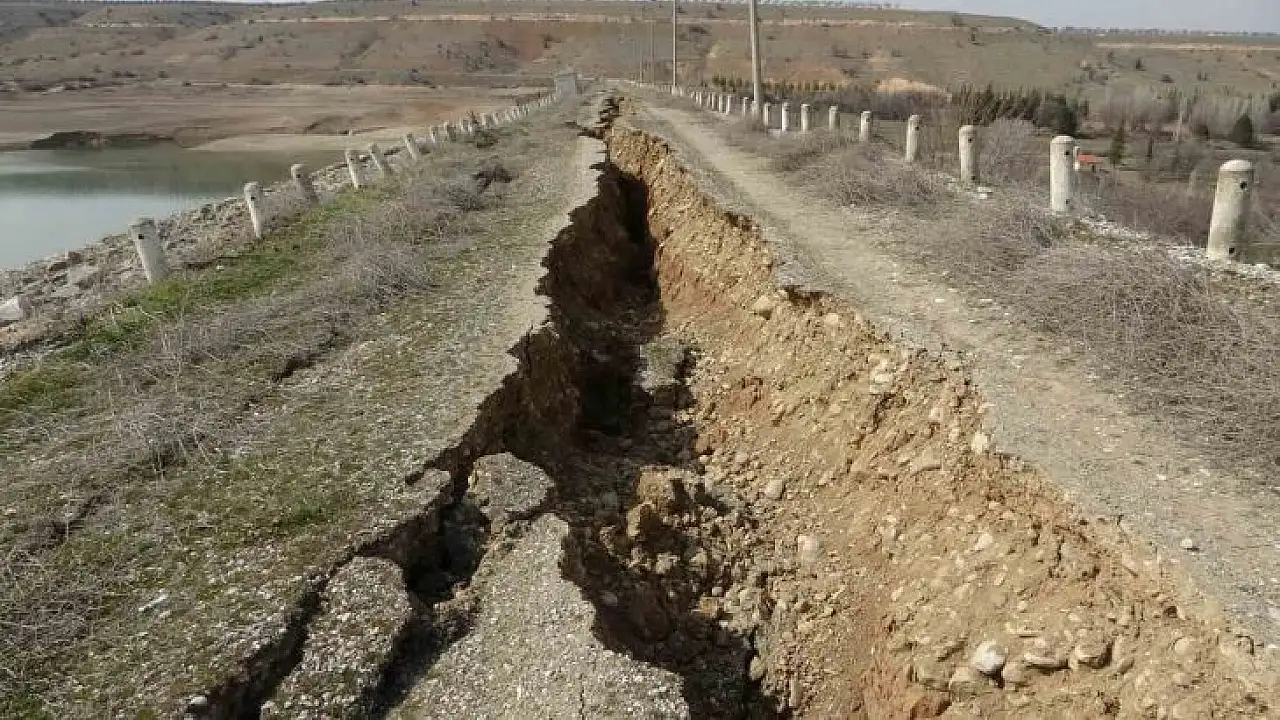 Malatya'nın Akçadağ ilçesinde bulunan ve Kahramanmaraşlı depremlerde etkilenen Sultansuyu Barajı üzerinde iki metre derinliğinde yarıklar oluştu.