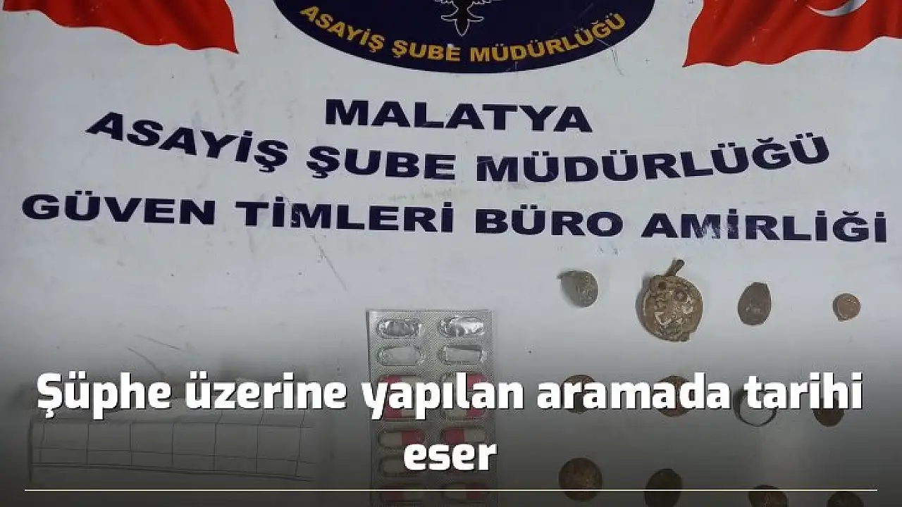 Edinilen bilgiye göre, Malatya Emniyet Müdürlüğü Asayiş Şube Müdürlüğü ile KOM Şube Müdürlüğünce yapılan koordineli çalışmada, Halep Caddesi’nde durumundan şüphelenilerek durdurulan bir şahıstan 12 adet tarihi eser nitelikli materyal, 10 adet uyuşturucu hap, 3 gram metamfetamin ele geçirildi.
