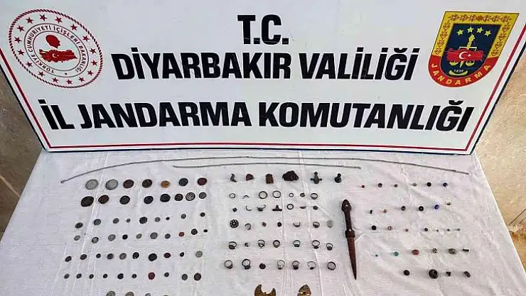 Diyarbakır İl Jandarma Komutanlığı tarafından yapılan çalışmalar neticesinde, Bağlar ilçesinde ikamet eden şahısların ellerinde bulundurdukları çeşitli eski eserleri 1 milyon 250 bin TL karşılığında satmak için müşteri aradıkları yönünde bilgi elde edildi. Şüpheliler, Bağlar Gömmetaş Mahallesi’nde tarihi eserleri satmaya çalıştıkları esnada suçüstü yakalandı. Şahısların üzerlerinde ve araçlarında yapılan aramada, Osmanlı, Bizans ve Urartu dönemine ait olduğu değerlendirilen 61 adet sikke, 28 adet yüzük, 7 adet obje, 3 adet mühür, 1 adet hançer, 1 adet 163 santim uzunluğunda zincir ve 31 adet farklı ebatlarda taş olmak üzere toplam 132 adet tarihi eser ele geçirildi. Ele geçirilen tarihi eserler muhafaza altına alınarak Müze Müdürlüğüne teslim edilirken, yakalanan 3 şüpheli hakkında soruşturma başlatıldı.