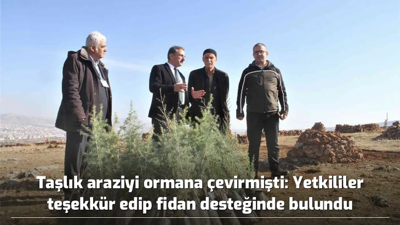 Taşlık araziyi ormana çevirmişti: Yetkililer teşekkür edip fidan desteğinde bulundu