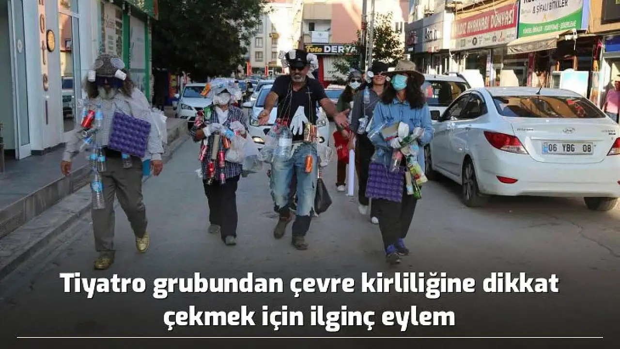 Tunceli Belediyesi Tiyatro Grubu, kentteki çevre kirliliğine dikkat çekmek için ilginç bir eylem gerçekleştirdi. Grup üyeleri vücutlarına bağladıkları çöplerle kent meydanında gezerek kirliliğe dikkat çekti.
