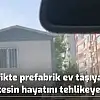 Trafikte prefabrik ev taşıyarak herkesin hayatını tehlikeye attı