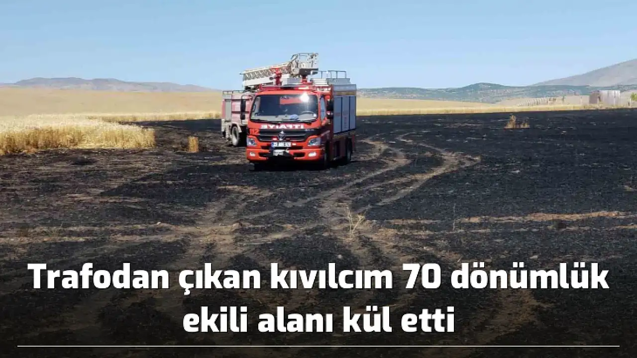 Elazığ'ın Karakoçan ilçesinde trafodan sıçrayan kıvılcımların neden olduğu yangında, 70 dönümlük ekili alan küle döndü.