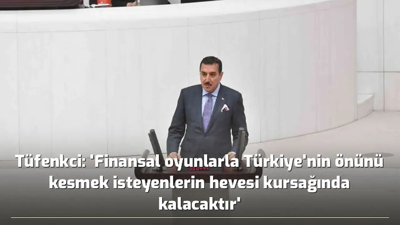 AK Parti MKYK Üyesi ve Malatya Milletvekili Bülent Tüfenkci, TBMM'de konuşma yapıp, 'Finansal oyunlarla Türkiye'nin önünü kesmek isteyenlerin hevesi kursağında kalacaktır' dedi.