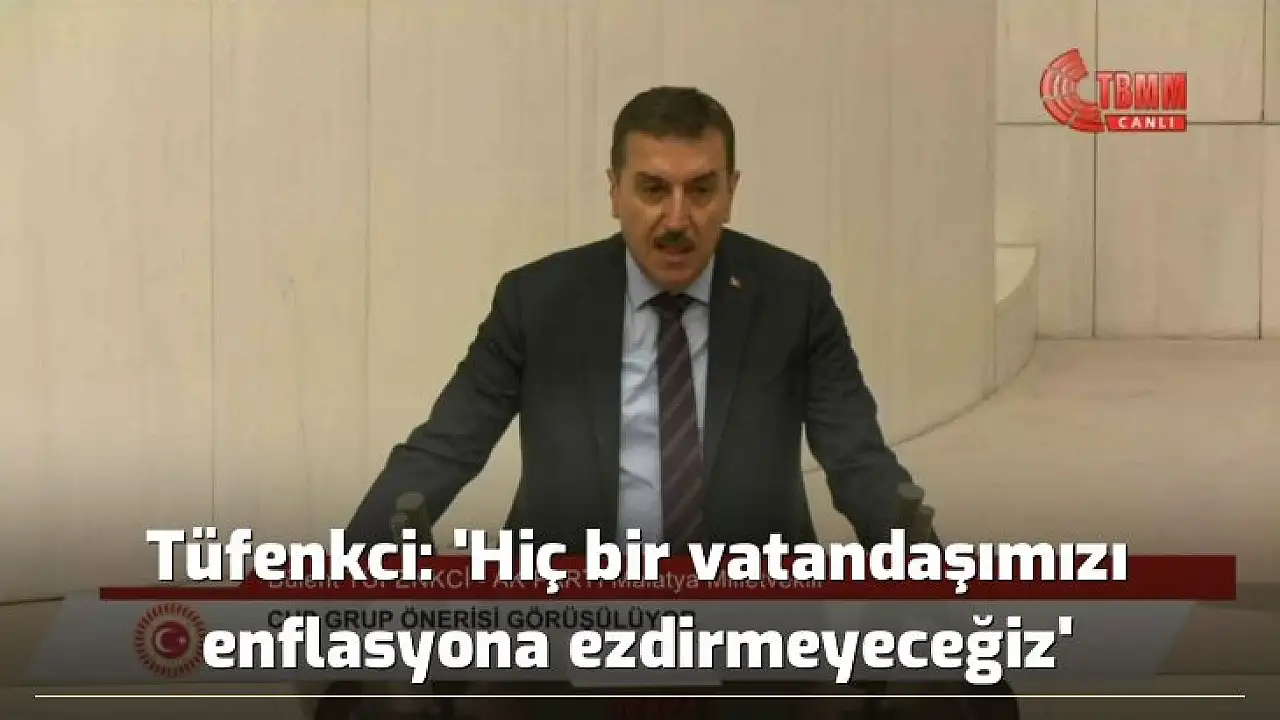 AK Parti MKYK Üyesi ve Malatya Milletvekili Bülent Tüfenkci, kamuda ihale alan firmaların yaşadığı sorunların araştırılması ve gerekli önlemlerin alınması konusunda Türkiye Büyük Millet Meclisi Genel Kurulunda bir konuşmada, ''Hiçbir vatandaşımızı enflasyona ezdirmeyeceğiz'' dedi