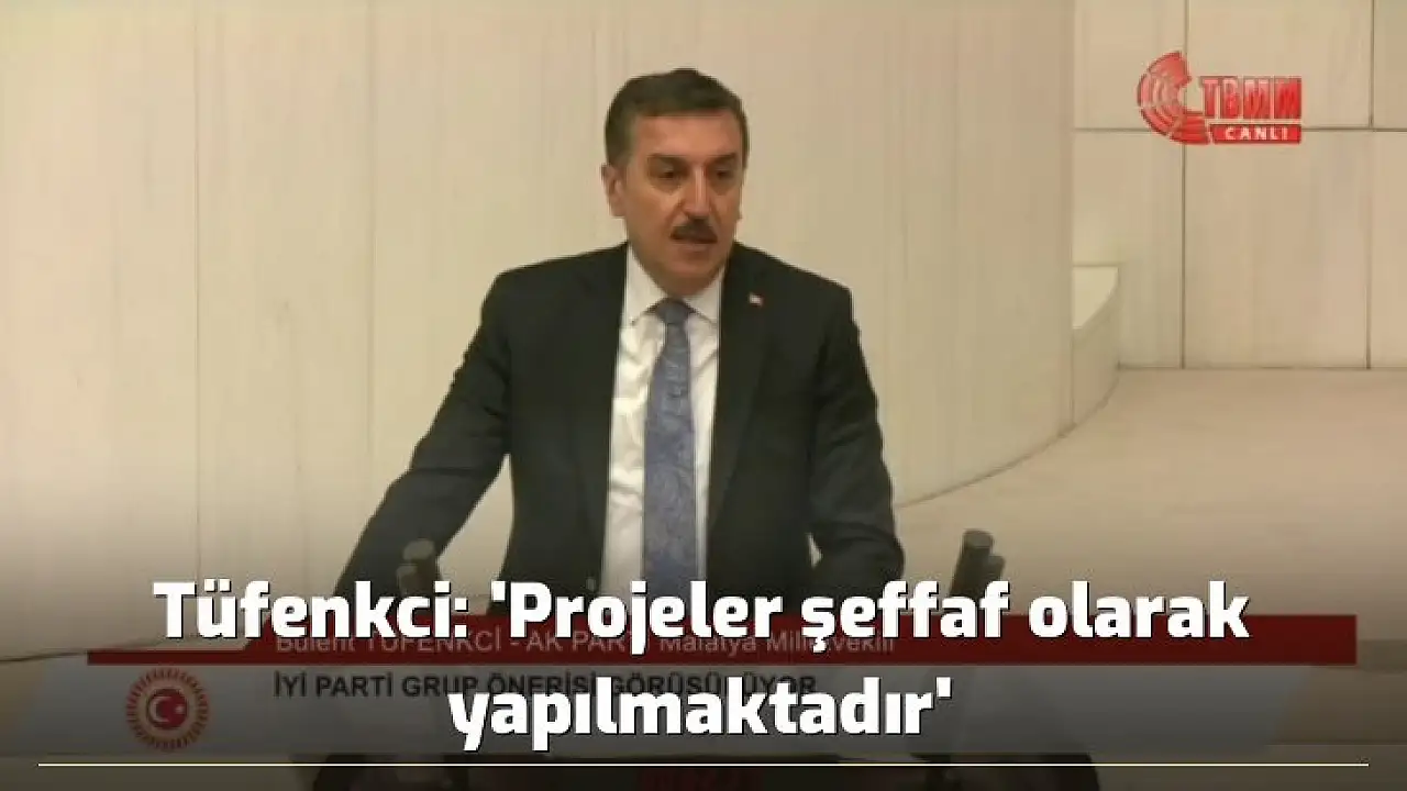 AK Parti MKYK Üyesi ve Malatya Milletvekili Bülent Tüfenkci,TBMM'de yaptığı konuşmada, Projeler şeffaf olarak ve hesap verilebilirlik içerisinde herkese açık olarak yapılmaktadır dedi.