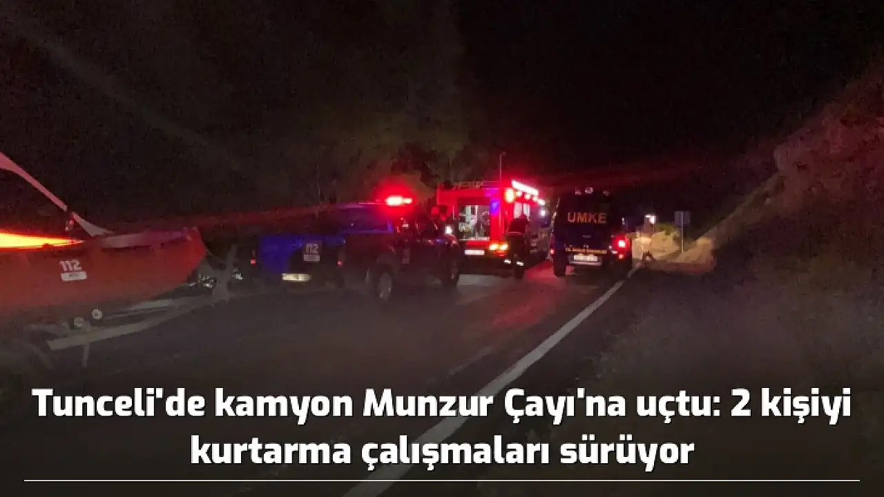 Tunceli'de kontrolden çıkan kamyon, Munzur Çayı'na uçtu. Olay yerine çok sayıda ekip sevk edilirken 2 kişiyi kurtarma çalışmaları sürüyor.