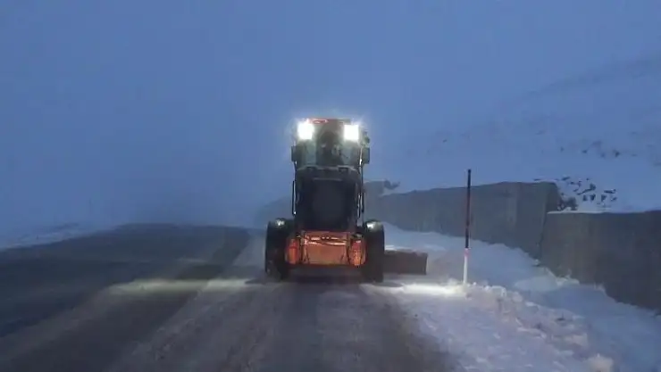 Tunceli'nin Pülümür ilçesinde etkili olan kar yağışı sonrasında karayolları ekipleri çalışmalarını sürdürüyor.
