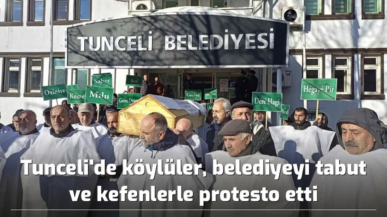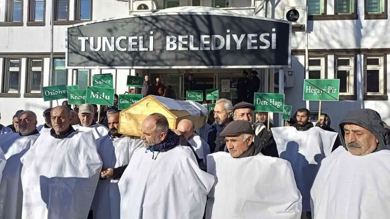Tunceli'de köylüler, belediyeyi tabut ve kefenlerle protesto etti