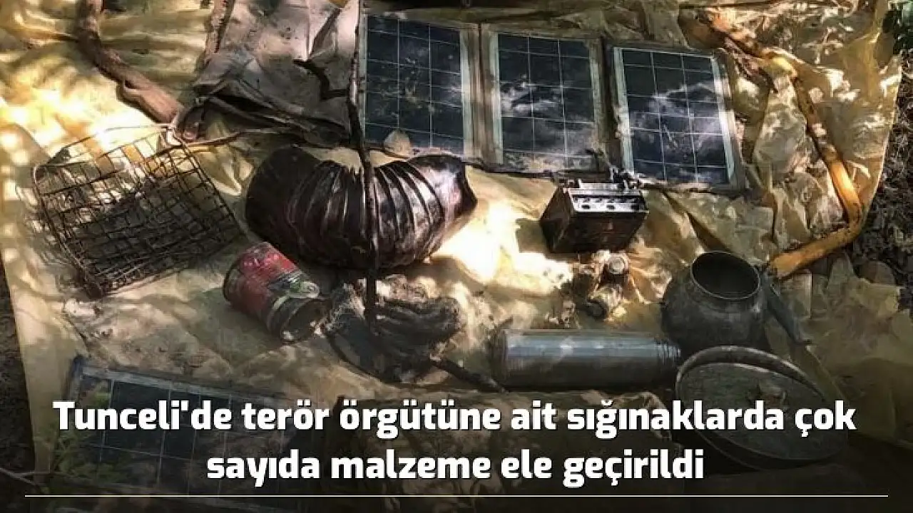 Valilik tarafından yapılan açıklamada, “Eren Abluka-7 operasyonu çerçevesinde, İl Jandarma Komutanlığımızca Tunceli merkez kırsalında gerçekleştirilen operasyonda 2 adet sığınak içerisinde; 1 adet jeneratör, 2 adet güneş paneli, 2 adet ampermetre, 1 adet akü, 13 adet büyük pil, 5 adet pil bloğu, 2 adet büyük tüp, 1 adet matkap, 1 adet kıyma makinesi, 1 adet sırt çantası, 300 metre branda, 200 metre sera naylonu ve çok miktarda yaşamsal malzeme ele geçirilmiştir” denildi.