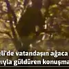 Tunceli'de vatandaşın ağaca çıkan ayıyla güldüren konuşması
