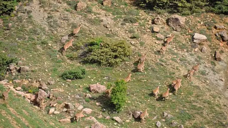 Tunceli'de yaban keçileri dron ile görüntülendi