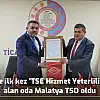Türkiye'de ilk kez 'TSE Hizmet Yeterlilik Belgesi' alan oda Malatya TSO oldu